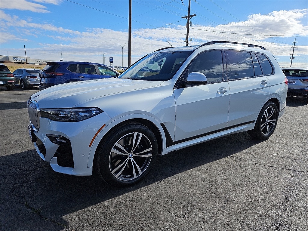 Recent Arrival! 2022 BMW X7 xDrive40i 3.0L I6 DOHC 24V 8-Speed Automatic Sport AWD Mineral White Metallic X7 xDrive40i, 4D Sport Utility, 3.0L I6 DOHC 24V, 8-Speed Automatic Sport, AWD, Mineral White Metallic, Cognac Leather, 3rd row seats: split-bench, 5-Zone Automatic Climate Control, ABS brakes, Active Driving Assistant Pro, Aerodynamic Kit, Alloy wheels, AM/FM radio: SiriusXM with 360L, Anthracite Alcantara Headliner, Apple CarPlay & Android Auto Compatibility, Auto High-beam Headlights, Auto tilt-away steering wheel, Auto-dimming Rear-View mirror, Auto-leveling suspension, BMW Assist eCall, Bumpers: body-color, ConnectedDrive Services, Drive Recorder, Driving Assistance Professional Package, Dual front impact airbags, Dual front side impact airbags, Electronic Stability Control, Emergency communication system: BMW Assist eCall, Extended Traffic Jam Assistant, Exterior Parking Camera Rear, Four wheel independent suspension, Front anti-roll bar, Front dual zone A/C, Fully automatic headlights, Garage door transmitter, Genuine wood console insert, Genuine wood dashboard insert, Genuine wood door panel insert, Gesture Control, Head restraints memory, Head-Up Display, Heated door mirrors, Heated Sport Seats, Heated steering wheel, High-Gloss Shadowline Roof Rails, Illuminated entry, Knee airbag, Leather Shift Knob, Live Cockpit Pro w/Navi, Low tire pressure warning, Lumbar Support, M Sport Brakes w/Black Calipers, Memory seat, Multi-Contour Seats, Navigation System, Occupant sensing airbag, Overhead airbag, Parking Assistance Package, Parking Assistant Plus, Power adjustable front head restraints, Power door mirrors, Power driver seat, Power Front Seats, Power moonroof: Panorama, Premium Package, Rain sensing wipers, Rear anti-roll bar, Rear Electric Side Window Shades, Rear-View Camera, Reclining 3rd row seat, Roof rack: rails only, Security system, Shadowline Exterior Trim, Soft-Close Automatic Doors, Speed control, Spoiler, Steering wheel mounted audio controls, Surround View w/3D View, Telescoping steering wheel, Turn signal indicator mirrors, Vernasca Leather Upholstery, Wheels: 21" x 9.5" Double-Spoke Bi-Color Orbit Grey, WiFi Hotspot, Wireless Charging. Odometer is 6713 miles below market average!