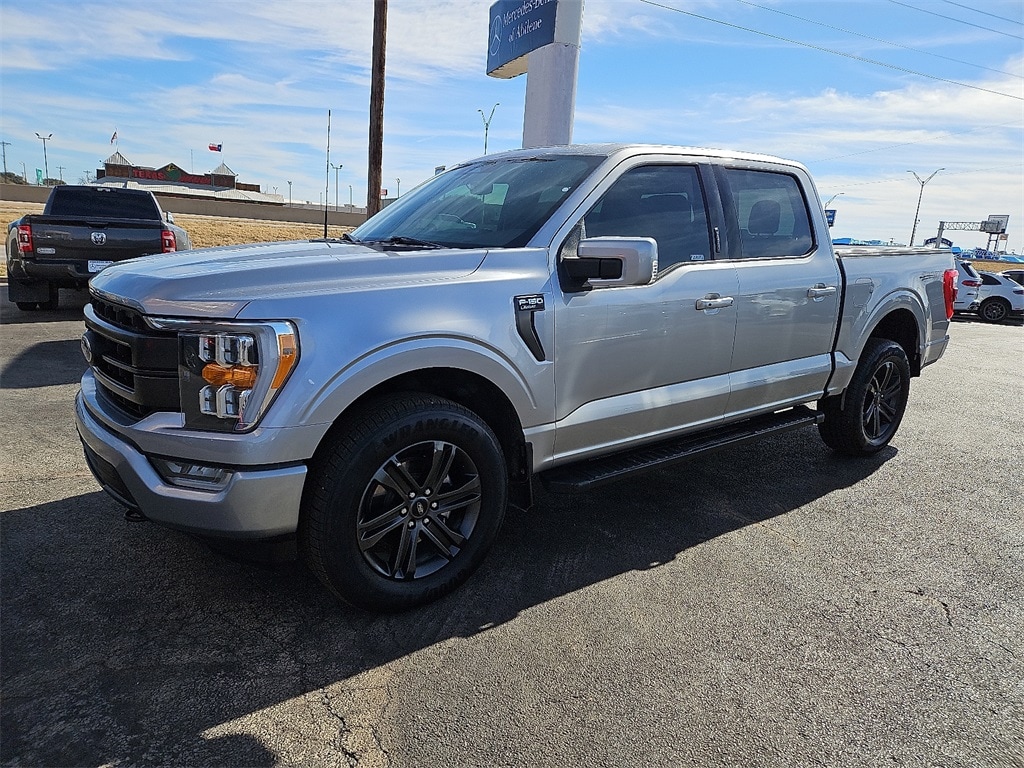 2021 Ford F-150 Lariat 5.0L V8 10-Speed Automatic 4WD Silver F-150 Lariat, 4D SuperCrew, 5.0L V8, 10-Speed Automatic, 4WD, Silver, Black Leather, 4-Wheel Disc Brakes, ABS brakes, Accent-Color Angular Step Bars, Adjustable pedals, Air Conditioning, Alloy wheels, Auto High-beam Headlights, Auto Start-Stop Removal, Auto-dimming door mirrors, Auto-dimming Rear-View mirror, Automatic temperature control, Body-Color Front & Rear Bumpers, Box Side Decals, Brake assist, Bumpers: chrome, Chrome Single-Tip Exhaust, Class IV Trailer Hitch Receiver, Dark 2-Bar & 1 Minor Bar Style Grille, Driver door bin, Driver vanity mirror, Dual front impact airbags, Dual front side impact airbags, Electronic Stability Control, Emergency communication system: SYNC 4 911 Assist, Equipment Group 501A Mid, Extended Range 36 Gallon Fuel Tank, Exterior Parking Camera Rear, Front anti-roll bar, Front Center Armrest w/Storage, Front dual zone A/C, Front fog lights, Front wheel independent suspension, Heated door mirrors, Heated front seats, Illuminated entry, Integrated Trailer Brake Controller, Interior Work Surface, Lariat Sport Appearance Package, Leather-Trimmed 40/20/40 Front Seat, LED Sideview Mirror Spotlights, Low tire pressure warning, Memory seat, Navigation system: Connected Navigation (90-Day Trial), Occupant sensing airbag, Onboard 400W Outlet, Outside temperature display, Overhead airbag, Panic alarm, Pedal memory, Power door mirrors, Power driver seat, Power passenger seat, Power steering, Power windows, Pro Trailer Backup Assist, Radio: B&O Sound System by Bang & Olufsen, Rear step bumper, Remote keyless entry, Security system, SYNC 4 w/Enhanced Voice Recognition, Telescoping steering wheel, Trailer Tow Package, Turn signal indicator mirrors, Universal Garage Door Opener, Variably intermittent wipers, Ventilated front seats, Wheels: 18" 6-Spoke Machined Aluminum.