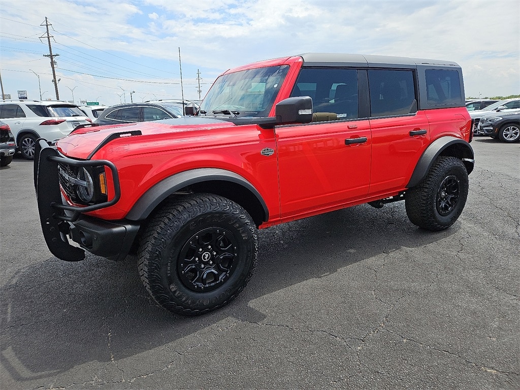 2023 Ford Bronco Wildtrak 2.7L EcoBoost V6 10-Speed Automatic 4WD Race Red ABS brakes, Compass, Electronic Stability Control, Heated door mirrors, Illuminated entry, Low tire pressure warning, Remote keyless entry, Traction control. Odometer is 5669 miles below market average!