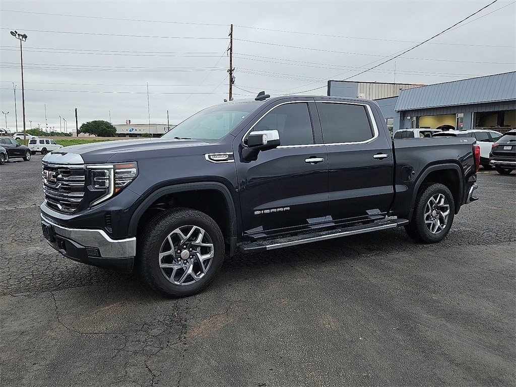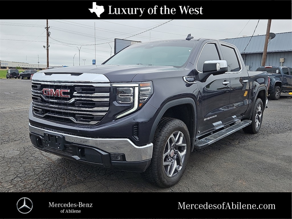 2023 GMC Sierra 1500 SLT EcoTec3 5.3L V8 10-Speed Automatic 4WD Titanium Rush Metallic Clean CARFAX. Bose Sound System, Off Road Package, Titanic Rush metallic paint, 10-Speed Automatic, 4WD, Jet Black Leather, 10-Way Power Driver Seat Adjuster w/Lumbar, 10-Way Power Passenger Seat Adjuster w/Lumbar, 120-Volt Instrument Panel Power Outlet, 170 Amp Alternator, 2 Charge/Data USB Ports, 2 Charge/Data USB Ports Inside Center Console, 2 Type-C Charge-Only Rear USB Ports, 20" Polished Aluminum Wheels, 6-Speaker Audio System Feature, Apple CarPlay/Android Auto, Auto High-beam Headlights, Auto-Locking Rear Differential, Automatic temperature control, Auxiliary External Transmission Oil Cooler, Chrome Header & Chrome Grille Insert Bars, Chrome Wheel To Wheel Assist Steps, Color-Keyed Carpeting Floor Covering, Compass, Deep-Tinted Glass, Delay-off headlights, Dual Exhaust System, Electric Rear-Window Defogger, Electrical Steering Column Lock, Electronic Precision Shift, Front Bucket Seats, Front dual zone A/C, Front fog lights, Front Frame-Mounted Black Recovery Hooks, Front Rainsensing Wipers, Fully automatic headlights, GMC Connected Access Capable, HD Rear Vision Camera, Heated front seats, Heated steering wheel, Heavy-Duty Air Filter, High Capacity Suspension Package, Hill Descent Control, Hitch Guidance, Keyless Open & Start, Lane Keep Assist w/Lane Departure Warning, LED Cargo Area Lighting, Manual Tilt-Wheel & Telescoping Steering Column, Memory seat, Navigation System, Off-Road Suspension, OnStar & GMC Connected Services Capable, Perf Leather-Appointed Front Outboard Seat Trim, Perimeter Lighting, Power Door Locks, Power driver seat, Power Front Passenger Windows w/Express Up/Down, Power Front Windows w/Driver Express Up/Down, Power passenger seat, Power Rear Windows w/Express Down, Power windows, Preferred Equipment Group 4SA, Premium Bose 7-Speaker Sound System, Push Button Start, Radio: Premium GMC Infotainment Audio System, Rear Wheelhouse Liners, Rear window defroster, Remote keyless entry, Remote Vehicle Starter System, Security system, SiriusXM w/360L, SLT Convenience Package, Steering Wheel Audio Controls, Texas Edition Badging, Texas Edition SLT Premium Package, Theft Deterrent System (Unauthorized Entry), Trailering Package, Ventilated Driver & Front Passenger Seats, Wi-Fi Hotspot Capable, Wireless Phone Projection, X31 Hard Badge, X31 Off-Road Package. Odometer is 6265 miles below market average!