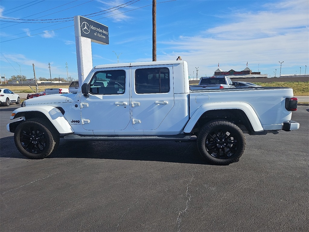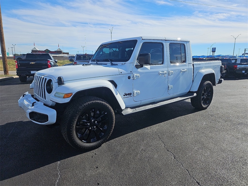 2021 Jeep Gladiator High Altitude 3.6L V6 24V VVT 8-Speed Automatic 4WD Bright White Clearcoat Clean CARFAX. Gladiator High Altitude, 4D Crew Cab, 3.6L V6 24V VVT, 8-Speed Automatic, 4WD, Bright White Clearcoat, Black Leather, 1-Year SiriusXM Guardian Trial, 3.73 Rear Axle Ratio, 400W Inverter, 5-Year SiriusXM Traffic Service, 5-Year SiriusXM Travel Link Service, 8.4" Radio & Premium Audio Group, 8.4" Touchscreen Display, Alpine Premium Audio System, Apple CarPlay/Android Auto, Auto-Dimming Rear-View Mirror, Blind Spot & Cross Path Detection, Body Color 3-Piece Hard Top, Body Color Exterior Mirrors, Body Color Front Bumper, Body Color Grille w/Gloss Black Rings, Body Color Rear Bumper w/Step Pads, Body-Color Door & Tailgate Handles, Brake assist, Caramel Interior Accents, Dana M210 Wide Front Axle, Dana M220 Wide Rear Axle, Daytime Running Lamps LED Accents, Electronic Stability Control, Emergency/Assistance Call, For Details, Visit DriveUconnect.com, Freedom Panel Storage Bag, Front Center Armrest w/Storage, Front dual zone A/C, Front LED Fog Lamps, Full Body Color Fender Flares, Full Length Floor Console Premium Armrest, Fully automatic headlights, Garage door transmitter, GPS Navigation, HD Radio, High Altitude Package, Leather steering wheel, Leather Wrapped Park Brake Handle, Leather Wrapped Shift Knob, Leather-Trimmed Bucket Seats, LED Lighting Group, LED Park Turn Lamps, LED Premium Reflector Headlamps, LED Taillamps, Normal Duty Plus Suspension, ParkSense Rear Park Assist System, ParkView Rear Back-Up Camera, Premium Dark Exterior Accents, Quick Order Package 24N High Altitude, Radio: Uconnect 4C Nav w/8.4" Display, Rear Armrest w/Cupholder Seat, Remote keyless entry, Remote Proximity Keyless Entry, Safety Group, SiriusXM Traffic Plus, SiriusXM Travel Link, Sport Front Shock Absorbers, Sport Rear Shock Absorbers, Sport Suspension, Steering wheel mounted audio controls, Wheels: 20" x 8" Gloss Black Aluminum, Wrapped I/P Bezel w/Caramel Stitch.