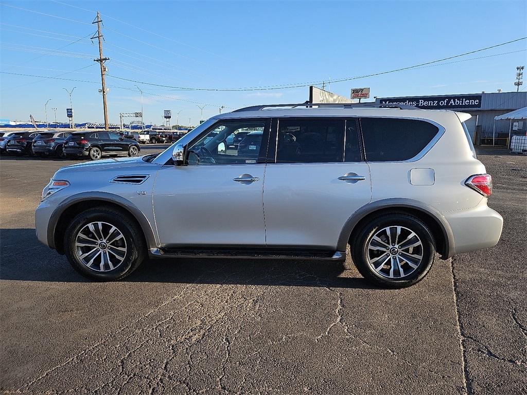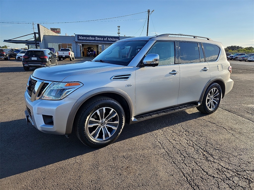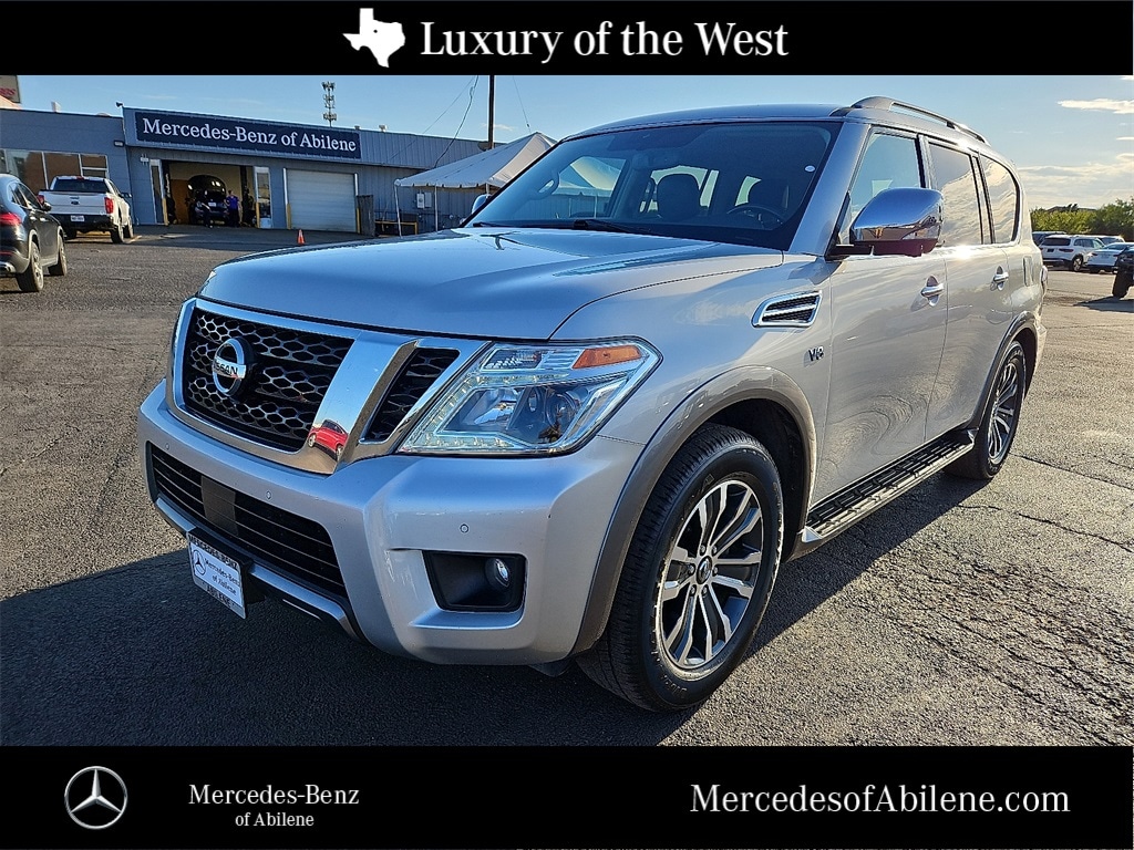 2020 Nissan Armada SL 5.6L V8 7-Speed Automatic RWD Brilliant Silver Metallic Premium Package, Armada SL, 4D Sport Utility, 5.6L V8, 7-Speed Automatic, RWD, Brilliant Silver Metallic, Black Leather, 13 Speakers, 20" Painted Alloy Wheels, 2nd Row Captain's Chairs, 2nd Row Center Console w/Padded Armrest, Auto-leveling suspension, Automatic temperature control, Blind Spot Warning, Captain's Chairs Package, Exterior Parking Camera Rear, Front Bucket Seats, Front dual zone A/C, Front fog lights, Fully automatic headlights, Heated Front Bucket Seats w/Power Driver's Memory, Heated front seats, Intelligent Back-Up Intervention (I-BI), Intelligent Distance Control (I-DC), Leather-Appointed Seat Trim, Memory seat, Navigation System, Power driver seat, Power Sliding Moonroof w/Front Tilt & Rear Slide, Power windows, Premium Package, Radio: AM/FM/SXM/CD/MP3/HD, Rear air conditioning, Rear Cross Traffic Alert (RCTA), Rear window defroster, Remote keyless entry, Steering wheel memory, Steering wheel mounted audio controls.