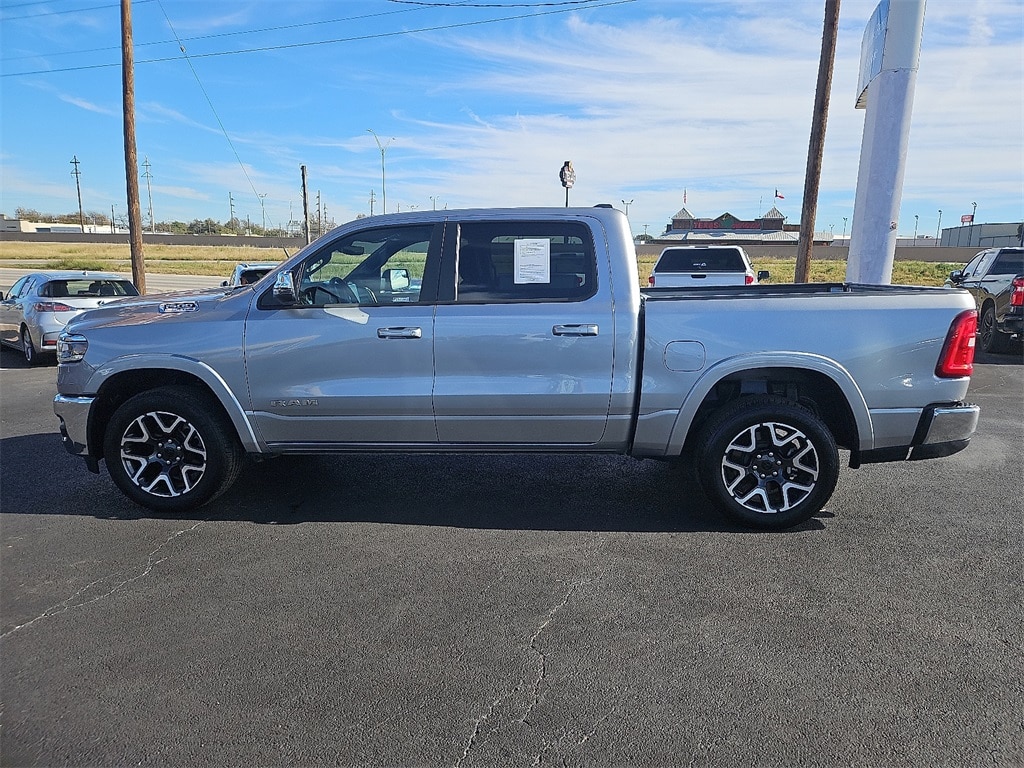 2025 Ram 1500 Laramie 3.0L I6 8-Speed Automatic 4WD Billet Silver Metallic Clearcoat CARFAX One-Owner. 3.55 Rear Axle Ratio, ABS brakes, Alloy wheels, AM/FM radio: SiriusXM with 360L, Apple CarPlay/Android Auto, Audio memory, Auto Power-Folding Mirrors, Auto-dimming door mirrors, Automatic temperature control, Bumpers: chrome, Chrome Exterior Mirrors, Driver Seat Memory, Dual front impact airbags, Electronic Stability Control, Exterior Mirrors w/Heating Element, Front dual zone A/C, GPS Navigation, Heated door mirrors, Heated Front Seats, Heated front seats, Heated rear seats, Heated steering wheel, Integrated Voice Command w/Bluetooth, Laramie Level 1 Equipment Group, Leather steering wheel, Leather Trim 40/20/40 Bench Seat, Memory seat, Occupant sensing airbag, Overhead airbag, ParkView Rear Back-Up Camera, Power 2-Way Driver Lumbar Adjust, Power 2-Way Passenger Lumbar Adjust, Power Adjust 8-Way Front Passenger Seat, Power door mirrors, Power driver seat, Power steering, Power windows, Quick Order Package 21H Laramie, Rain Sensitive Windshield Wipers, RAM Grille Badge - Chrome, Rear step bumper, Remote keyless entry, Remote Tailgate Release, Security system, Split folding rear seat, Steering wheel mounted audio controls, Telescoping steering wheel, Variably intermittent wipers, Ventilated Front Seats.